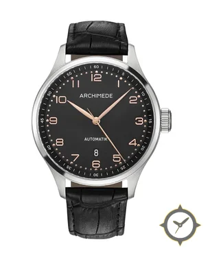 Eine Dress-Uhr mit einem vielseitigen 40.5mm Gehäuse, das an fast jedes Handgelenk passt, gefertigt aus Edelstahl mit einem Zifferblatt in schwarz und einer besonderen "matte"-Oberfläche.