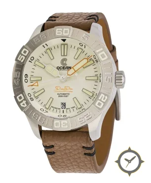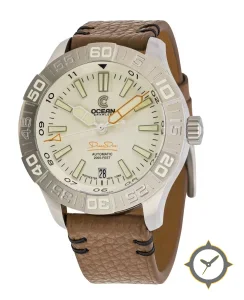 Eine Taucheruhr-Uhr mit einem vielseitigen 40mm Gehäuse, das an fast jedes Handgelenk passt, gefertigt aus Edelstahl mit einem Zifferblatt in weiß und einer besonderen "lacquer"-Oberfläche.