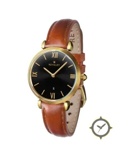 Eine Dress-Uhr mit einem 26mm Gehäuse im Vintage-Stil gefertigt aus Gold mit einem Zifferblatt in schwarz und einer besonderen "sunburst"-Oberfläche.