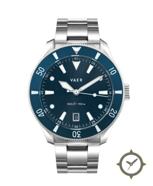 Eine Taucheruhr-Uhr mit einem vielseitigen 39mm Gehäuse, das an fast jedes Handgelenk passt, gefertigt aus Edelstahl mit einem Zifferblatt in marineblau und einer besonderen "sunburst"-Oberfläche.