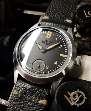 Eine Pilot-Uhr mit einem vielseitigen 39.5mm Gehäuse, das an fast jedes Handgelenk passt, gefertigt aus Edelstahl mit einem Zifferblatt in grau und einer besonderen "matte"-Oberfläche.