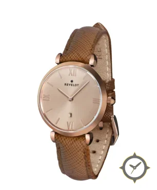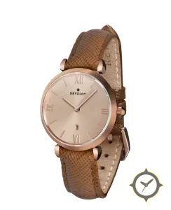 Eine Dress-Uhr mit einem 33mm Gehäuse im Vintage-Stil gefertigt aus Gold mit einem Zifferblatt in gold und einer besonderen "sunburst"-Oberfläche.