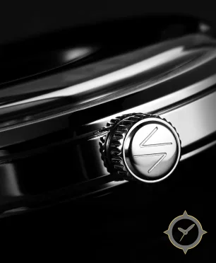 Eine Dress-Uhr mit einem markanten 41.5mm Auftritt am Handgelenk, gefertigt aus Edelstahl mit einem auffälligen schwarz Zifferblatt.