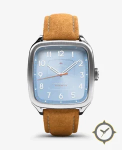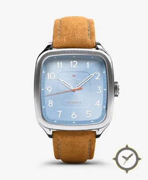 Eine Vintage-Uhr gefertigt aus Edelstahl mit einem Zifferblatt in blau und einer besonderen "brushed"-Oberfläche.