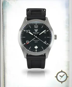 Eine GMT-Uhr mit einem markanten 49mm Auftritt am Handgelenk, gefertigt aus Edelstahl mit einem Zifferblatt in schwarz und einer besonderen "matte"-Oberfläche und einer echten GMT-Funktion, mit der du eine zweite Zeitzone verfolgen kannst.
