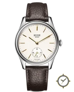 Eine Dress-Uhr mit einem 31.5mm Gehäuse im Vintage-Stil gefertigt aus Edelstahl mit einem Zifferblatt in weiß und einer besonderen "smooth/matte"-Oberfläche.