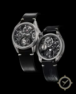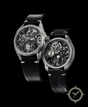 Eine Skelett-Uhr gefertigt aus Edelstahl mit einem Zifferblatt in schwarz und einer besonderen "skeleton/open-worked"-Oberfläche.