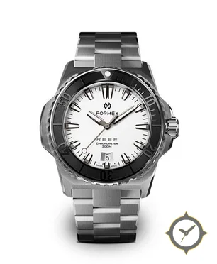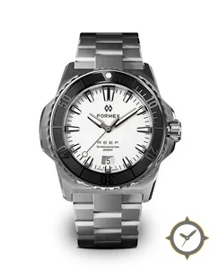 Eine Taucheruhr-Uhr mit einem vielseitigen 38mm Gehäuse, das an fast jedes Handgelenk passt, gefertigt aus Edelstahl mit einem Zifferblatt in weiß und einer besonderen "matte"-Oberfläche.