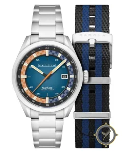Eine Sport-Uhr mit einem vielseitigen 39mm Gehäuse, das an fast jedes Handgelenk passt, gefertigt aus Edelstahl mit einem Zifferblatt in blau und einer besonderen "sunburst"-Oberfläche.
