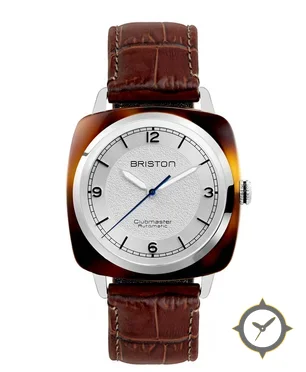 Eine Dress-Uhr mit einem 34.5mm Gehäuse im Vintage-Stil gefertigt aus Harz mit einem Zifferblatt in silber und einer besonderen "textured/grainy central disc with smooth outer chapter ring"-Oberfläche.