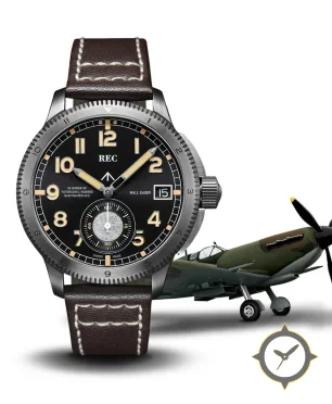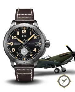 Eine Pilot-Uhr mit einem markanten 43mm Auftritt am Handgelenk, gefertigt aus Edelstahl mit einem Zifferblatt in schwarz und einer besonderen "matte"-Oberfläche.