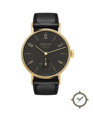 Eine Dress-Uhr mit einem 29.5mm Gehäuse im Vintage-Stil gefertigt aus Gold mit einem Zifferblatt in schwarz und einer besonderen "matte"-Oberfläche.