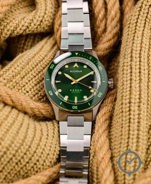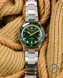 Eine Taucheruhr-Uhr mit einem vielseitigen 40mm Gehäuse, das an fast jedes Handgelenk passt, gefertigt aus Edelstahl mit einem Zifferblatt in grün und einer besonderen "sunburst/gradient"-Oberfläche.