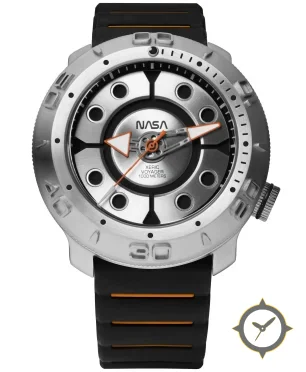 Eine Taucheruhr-Uhr mit einem markanten 47.5mm Auftritt am Handgelenk, gefertigt aus Edelstahl mit einem Zifferblatt in silber und einer besonderen "brushed-metal"-Oberfläche.