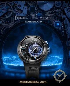 Eine Skelett-Uhr mit einem markanten 42mm Auftritt am Handgelenk, gefertigt aus Carbon mit einem Zifferblatt in blau und einer besonderen "open-worked / skeletonized"-Oberfläche.