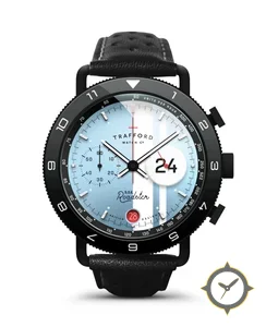 Eine Chronograph-Uhr gefertigt aus Keramik mit einem Zifferblatt in blau und einer besonderen "gradient / sunburst"-Oberfläche.