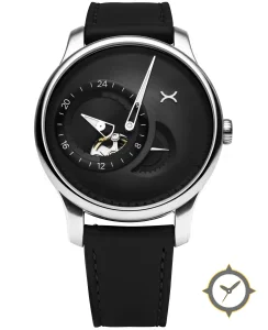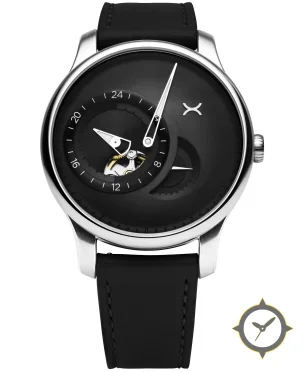 Eine Minimalistisch-Uhr mit einem vielseitigen 38mm Gehäuse, das an fast jedes Handgelenk passt, gefertigt aus Edelstahl mit einem Zifferblatt in schwarz und einer besonderen "brushed sunburst"-Oberfläche.