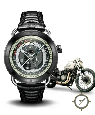 Eine Vintage-Uhr mit einem vielseitigen 39mm Gehäuse, das an fast jedes Handgelenk passt, gefertigt aus Edelstahl mit einem Zifferblatt in silber und einer besonderen "open-heart / partially skeletonized center with distressed/patina finish"-Oberfläche.