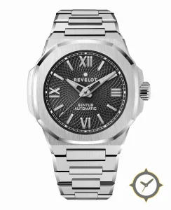 Eine Sport-Uhr mit einem markanten 44mm Auftritt am Handgelenk, gefertigt aus Edelstahl mit einem Zifferblatt in schwarz und einer besonderen "radiating guilloché / waffle texture"-Oberfläche.