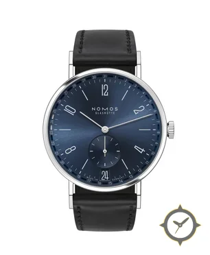 Eine Dress-Uhr mit einem vielseitigen 38.5mm Gehäuse, das an fast jedes Handgelenk passt, gefertigt aus Edelstahl mit einem Zifferblatt in blau und einer besonderen "sunburst (radial brushing)"-Oberfläche.
