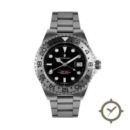 Eine GMT-Uhr mit einem vielseitigen 38.5mm Gehäuse, das an fast jedes Handgelenk passt, gefertigt aus Edelstahl mit einem Zifferblatt in schwarz und einer besonderen "matte"-Oberfläche und einer echten GMT-Funktion, mit der du eine zweite Zeitzone verfolgen kannst.