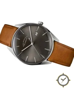 Eine Dress-Uhr mit einem 34.5mm Gehäuse im Vintage-Stil gefertigt aus Edelstahl mit einem Zifferblatt in grau und einer besonderen "sunburst"-Oberfläche.
