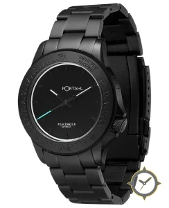 Eine Minimalistisch-Uhr gefertigt aus Edelstahl mit einem Zifferblatt in schwarz und einer besonderen "matte"-Oberfläche.