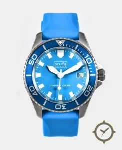 Eine Taucheruhr-Uhr mit einem 36mm Gehäuse im Vintage-Stil gefertigt aus Edelstahl mit einem Zifferblatt in blau und einer besonderen "matte"-Oberfläche.