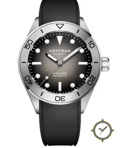 Eine Taucheruhr-Uhr mit einem markanten 47mm Auftritt am Handgelenk, gefertigt aus Edelstahl mit einem Zifferblatt in schwarz und einer besonderen "fumé gradient (sunburst)"-Oberfläche.