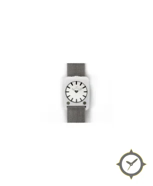 Eine Minimalistisch-Uhr gefertigt aus Keramik mit einem Zifferblatt in weiß und einer besonderen "matte"-Oberfläche.