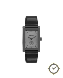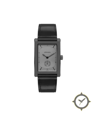 Eine Dress-Uhr gefertigt aus Edelstahl mit einem Zifferblatt in silber und einer besonderen "matte"-Oberfläche.