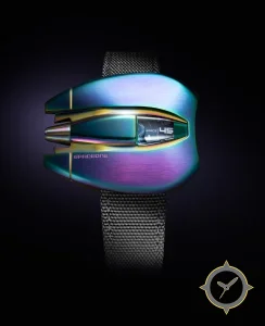 Eine Digital-Uhr gefertigt aus Titan mit einem Zifferblatt in schwarz und einer besonderen "smooth digital display"-Oberfläche.