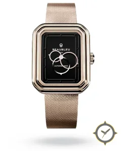 Eine Dress-Uhr mit einem 29mm Gehäuse im Vintage-Stil gefertigt aus Gold mit einem Zifferblatt in schwarz und einer besonderen "glossy lacquer"-Oberfläche.