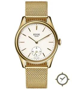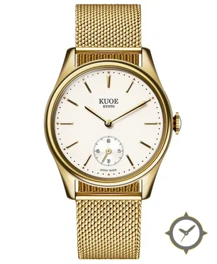 Eine Dress-Uhr mit einem 31mm Gehäuse im Vintage-Stil gefertigt aus Gold mit einem Zifferblatt in weiß und einer besonderen "smooth lacquer"-Oberfläche.
