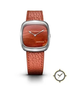 Eine Dress-Uhr mit einem vielseitigen 40.5mm Gehäuse, das an fast jedes Handgelenk passt, gefertigt aus Edelstahl mit einem Zifferblatt in braun und einer besonderen "natural stone/wood grain (jasper-like) texture"-Oberfläche.