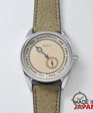 Eine Vintage-Uhr mit einem vielseitigen 38.5mm Gehäuse, das an fast jedes Handgelenk passt, gefertigt aus Edelstahl mit einem Zifferblatt in braun und einer besonderen "wavy guilloché (wave pattern)"-Oberfläche.