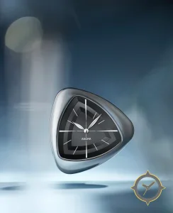Eine Luxus-Uhr mit einem markanten 43.5mm Auftritt am Handgelenk, gefertigt aus Edelstahl mit einem Zifferblatt in schwarz und einer besonderen "matte finish with concentric triangular layered texture"-Oberfläche.
