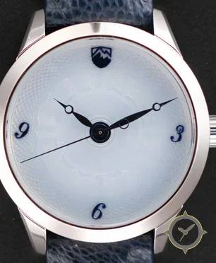 Eine Dress-Uhr mit einem 35.5mm Gehäuse im Vintage-Stil gefertigt aus Edelstahl mit einem Zifferblatt in weiß und einer besonderen "guilloché"-Oberfläche.