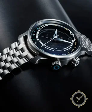 Eine GMT-Uhr mit einem 37mm Gehäuse im Vintage-Stil gefertigt aus Edelstahl mit einem Zifferblatt in schwarz und einer besonderen "matte with subtle starfield / multi-layered depth"-Oberfläche und einer echten GMT-Funktion, mit der du eine zweite Zeitzone verfolgen kannst.