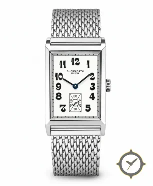 Eine Dress-Uhr mit einem 28mm Gehäuse im Vintage-Stil gefertigt aus Edelstahl mit einem Zifferblatt in weiß und einer besonderen "enamel (polished)"-Oberfläche.