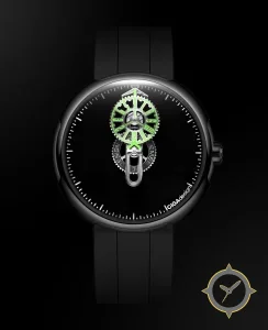 Eine Skelett-Uhr gefertigt aus Edelstahl mit einem Zifferblatt in schwarz und einer besonderen "glossy"-Oberfläche.