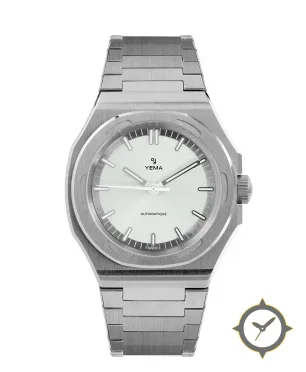 Eine Sport-Uhr mit einem vielseitigen 40mm Gehäuse, das an fast jedes Handgelenk passt, gefertigt aus Edelstahl mit einem Zifferblatt in silber und einer besonderen "sunburst"-Oberfläche.