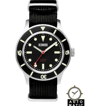 Eine Taucheruhr-Uhr mit einem 33mm Gehäuse im Vintage-Stil gefertigt aus Edelstahl mit einem Zifferblatt in schwarz und einer besonderen "matte"-Oberfläche.