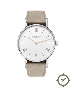 Eine Dress-Uhr mit einem 28.5mm Gehäuse im Vintage-Stil gefertigt aus Edelstahl mit einem Zifferblatt in weiß und einer besonderen "matte"-Oberfläche.