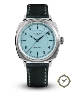 Eine Vintage-Uhr mit einem 32mm Gehäuse im Vintage-Stil gefertigt aus Edelstahl mit einem Zifferblatt in orange und einer besonderen "matte"-Oberfläche.