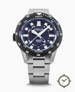 Eine GMT-Uhr mit einem markanten 44.5mm Auftritt am Handgelenk, gefertigt aus Edelstahl mit einem Zifferblatt in blau und einer besonderen "matte"-Oberfläche und einer echten GMT-Funktion, mit der du eine zweite Zeitzone verfolgen kannst.