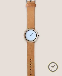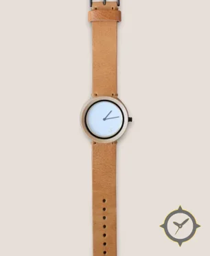 Eine Minimalistisch-Uhr mit einem 36.5mm Gehäuse im Vintage-Stil gefertigt aus Edelstahl mit einem Zifferblatt in weiß und einer besonderen "matte"-Oberfläche.