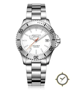 Eine Taucheruhr-Uhr mit einem vielseitigen 40.5mm Gehäuse, das an fast jedes Handgelenk passt, gefertigt aus Edelstahl mit einem Zifferblatt in weiß und einer besonderen "matte"-Oberfläche.