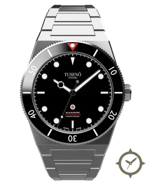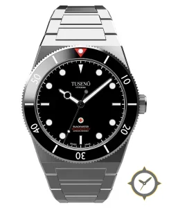 Eine Taucheruhr-Uhr mit einem 37.5mm Gehäuse im Vintage-Stil gefertigt aus Edelstahl mit einem Zifferblatt in schwarz und einer besonderen "matte"-Oberfläche.