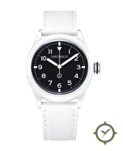 Eine Field-Uhr mit einem 31mm Gehäuse im Vintage-Stil gefertigt aus Edelstahl mit einem Zifferblatt in schwarz und einer besonderen "matte"-Oberfläche.